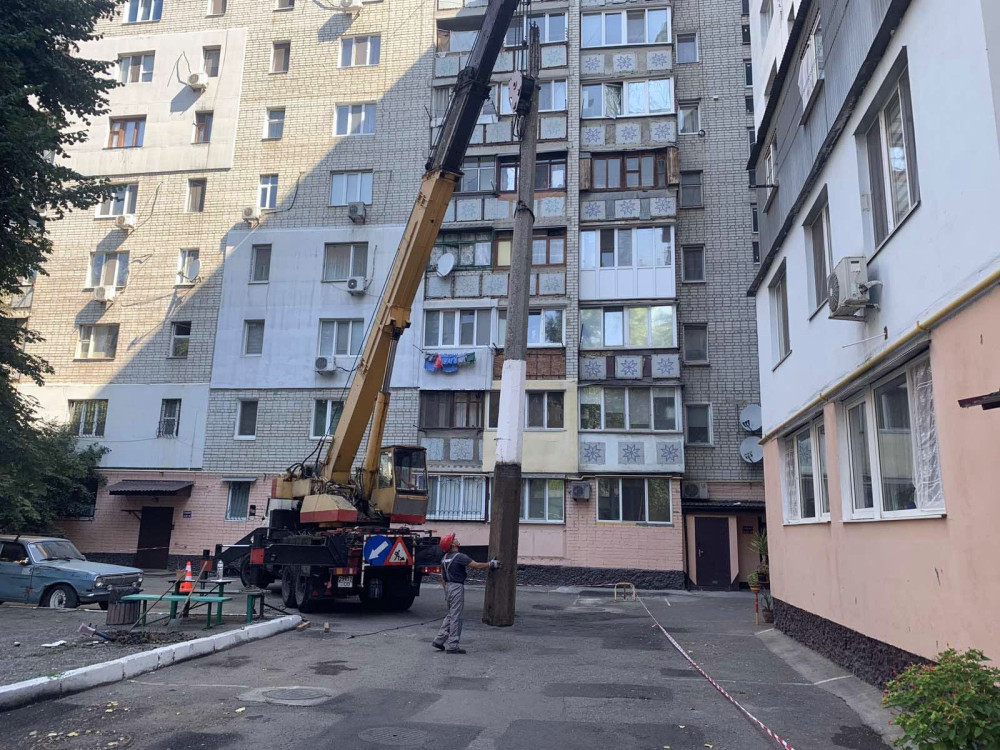 Фахівці демонтували пошкоджену опору та встановили нову. Також було підключено новий світильник і проведено електричну лінію.