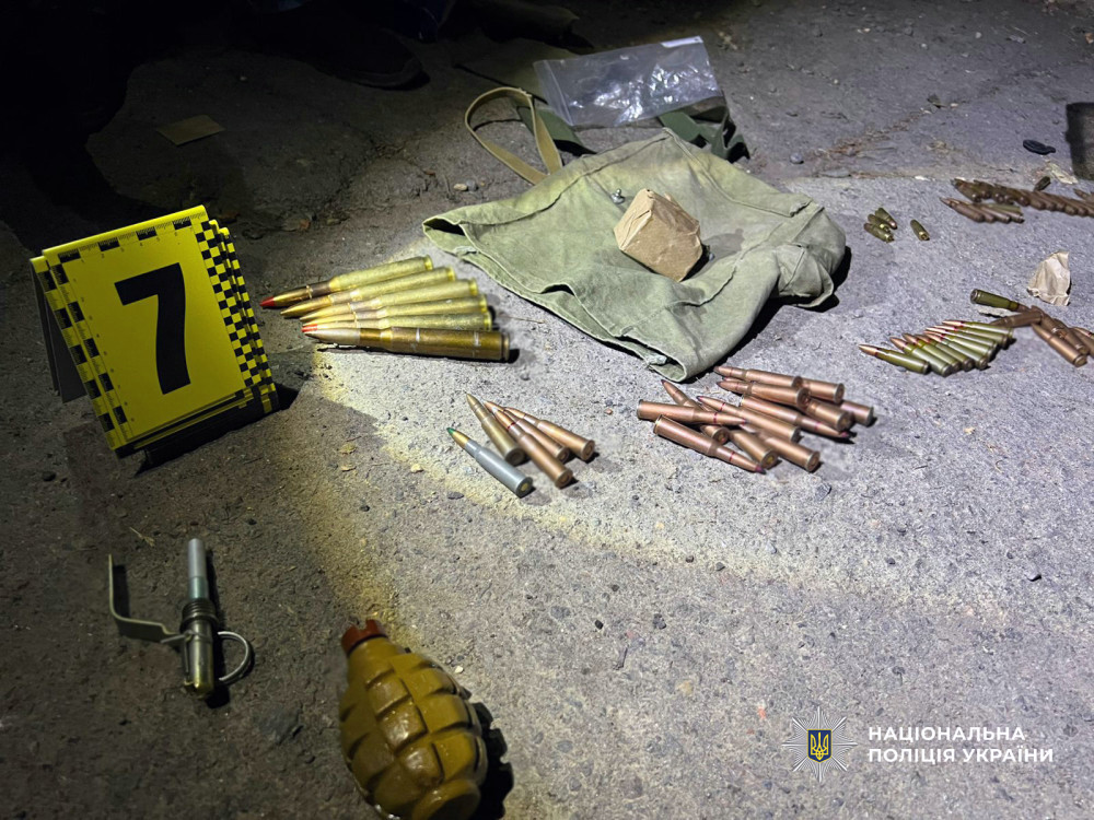 Крім цього, поліцейські виявили, що чоловік зберігав вдома вибухонебезпечні предмети. Під час обшуку, проведеного спільно з фахівцями вибухотехнічної служби, у гаражі було знайдено понад 200 набоїв різного калібру та ручну осколкову гранату. Остання, за попередніми даними, є вибуховим пристроєм та бойовим припасом.
